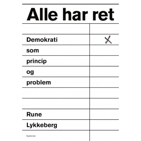 DEMOKRATI SOM PROBLEM OG FORDRING er ikke en bog for eller imod demokrati. Den er en polemik imod brugen af demokrati som et slogan, de pæne og oplyste kan bruge til at slå de grimme og dumme oven i hovedet med. Den viser, at selvom alle hylder demokrati som en værdi og en løsning, opleves demokrati i praksis som både et problem og en fordring. Demokrati betyder, at du ikke skal finde dig i, at nogen bestemmer over dig uden dit samtykke. Det er stadig et revolutionært princip.