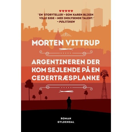 'Argentineren der kom sejlende på en cedertræsplanke' er en farverig og vidt forgrenet historie om tre generationer og deres valg i livet. Om de løgne, myter, minder, sygdomme og vaner, som binder generationer sammen. Det er en historie om ishavets fangere, Polynesiens vaniljeplantager, 00´ernes småsvindlere, forældres svigt, Che Guevara, udlængsel og terror, og fortællingen breder sig fra mellemkrigstidens Argentina over Francos Spanien til Europa efter 2001.