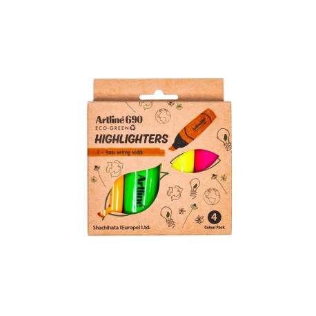 Artline ECO-GREEN Highlighter -Ergonomic grip for comfortable, extended use -Ideal for highlighting text or creative projects -Available in 5 Vibrant colours to suit your style Made from post consumer recycled plastic