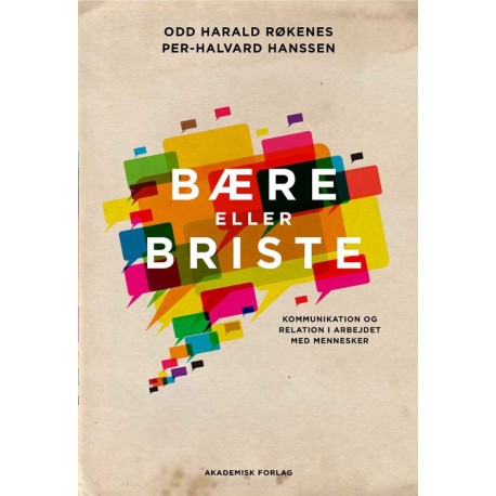 Kommunikation er et grundlæggende element i alt arbejde med mennesker. At skabe et vellykket møde og en god, bærende relation er ofte den vigtigste del af arbejdet. ‘Bære eller briste – kommunikationog relation i arbejdet med mennesker’ handler om, at kommunikation drejer sig om mere end at gøre sig forstået. Det er vigtigt at lære sig selv at kende og at udvikle en personlig professionalitet. God kommunikation handler om at leve sig ind i andres verden, skabe et oplevelsesfællesskab, opbygge relationer til andre mennesker og have modet til at være i situationer, der opleves som vanskelige. Fagpersoner har brug for at tilegne sig viden om kommunikationsprocesser og udvikle kommunikationsfærdigheder. God kommunikation kræver også, at fagpersonen reflekterer over sin egen forståelse og sine egne handlinger og interagerer på en måde, der ikke krænker andre menneskers integritet og ret til selvbestemmelse.Bære eller briste giver en introduktion til kommunikations- og relationsteori og tager centrale begreber og problemstillinger op. Indholdet er bredt forankret i psykologi, filosofi, etik, sociologi, sundhedsvidenskab og neurovidenskab. Gennem hele bogen præsenteres læseren for opgaver og øvelser, hvor teori og problemstillinger bliver konkretiseret. Bære eller briste henvender sig til alle, som arbejder med mennesker, og til alle studerende, der uddanner sig til denne form for arbejde.