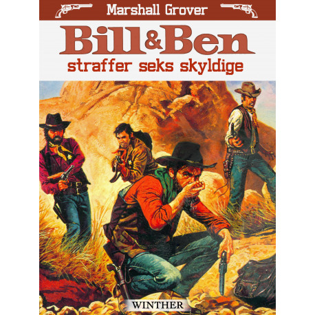 Sølvminebyen Seergersville er bestemt ikke noget rart sted. Det får Bill og Ben hurtigt at føle, da de bliver berøvet og uretfærdigt arresteret af områdets forbryderbande under ledelse af Ed Birell. Men de to texanske pistolslyngere lader ikke den slags gå ustraffet hen, og før nogen ved af det, er Bill og Ben gået ind i jagten på de seks skyldige.Leonard F. Meares (1921-1993) var en kendt amerikansk forfatter, som af de fleste er bedre kendt under pseudonymet Marshall Grover. Han var kendt for sine utallige westerns og er en af de få forfattere, der har skrevet mere end hundrede bøger – 746 for at være helt præcis. Deriblandt er også mere end hundrede bind i westernserien "Bill og Ben"."Bill og Ben" er en amerikansk westernserie skrevet af den berømte westernforfatter Leonard F. Meares under pseudonymet Marshall Grover. Serien følger de to cowboys Bill og Ben på deres utallige eventyr, der spænder over mere end hundrede bind. Klassisk og underholdende western til alle aldre.