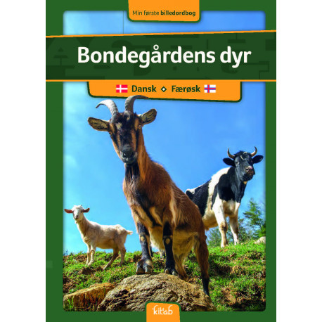 Bondegårdens dyr viser billeder af forskellige bondegårdsdyr og angiver navnet på arten, hunnen, hannen og ungen. Billedordbogens ord er angivet på standard-færøsk med udgangspunkt i hovedstadsdialekten.