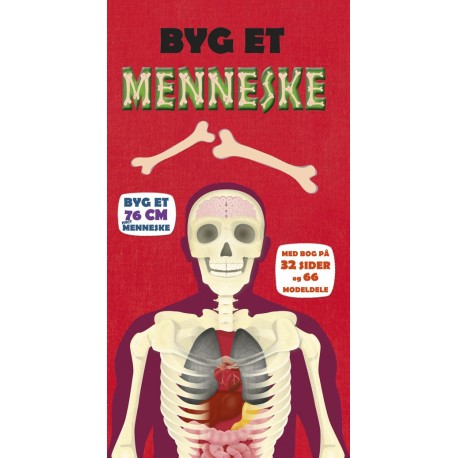 Byg et menneske er en stor flot box med en bog på 32 sider og 66 modeldele, så man kan bygge sit eget skelet.