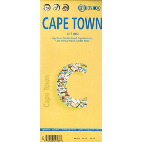 Lamineret bykort med register og en del indsatte specialkort: Robben Island, Cape Town regionen og 'Cape Peninsula'. Målestokken er 1:15.000.