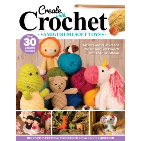 An introduction to Japanese amigurumi, with guidance on choosing a yarn, different crochet stitches, working on tension, fixing mistakes, and reading a stitch pattern. Includes 30 adorable amigurumi patterns for you to create including a teddy bear, bunny, unicorn, triceratops, a mouse, and many others.