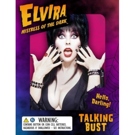 An officially licensed, talking bust collectible of recent bestselling author and horror and film icon Elvira, Mistress of the Dark that is perfect for horror lovers and the Halloween season.