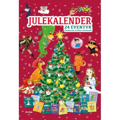 Indeholder 24 bøger, en for hver dag i december frem til juleaften. Hver bog er på 16 sider og indeholder et eventyr – læs bl.a. Hans og bønnestagen, Snedronningen og Rødhætte. Og glæd jer til de tre eventyr med et tvist, og læs, hvordan Askepot bliver til Askefant.