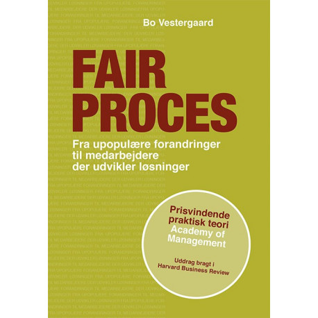 Men hvordan involvere uden at miste styringen? Og hvordan styre uden at miste ejerskabet? Fair proces er en forskningsbaseret og praktisk tilgang til forløbsstyring af involverende forandringsprocesser. En tidlig udgave af bogen vandt i 2012 en pris på den nordamerikanske forskerpraktiker- konference “Academy of Management” i Boston. Uddrag af bogen er bragt i Harvard Business Review.