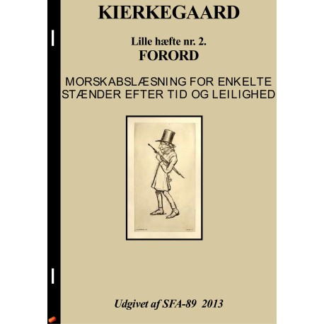 Det er lidt uklart hvorfor dette skrift hedder FORORD - undertitlen MORSKABSLÆSNING FOR ENKELTE STÆNDER EFTER TID OG LEILIGHED er mere dækkende. Kierkegaard filosoferer over en forfatters hele stilling i samfundet - ligeledes påtænker han at udgive et filosofisk tidsskriftmen vanskelighederne er mange, hvilket fører til yderst humoristiske og satiriske betragtninger.