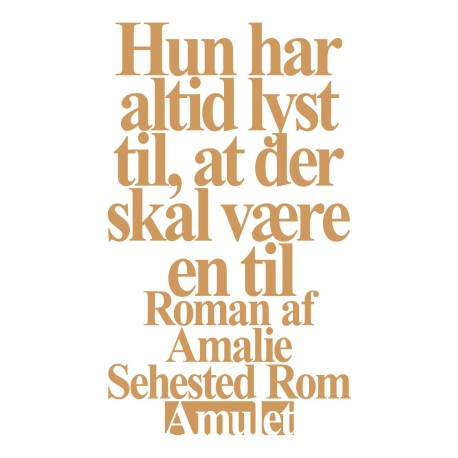 "Hun har altid lyst til, at der skal være en til" er en roman af den debuterende forfatter, Amalie Sehested Rom (f. 1993). Det er et politisk, ømt og solidarisk generationsportræt - og en fortælling om kærlighed, modstand og om at blive fri.