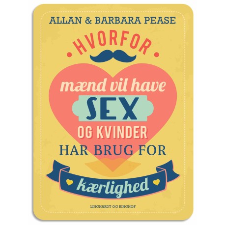 DEN ULTIMATIVE GUIDE TIL DET MODSATTE KØN. TIL MÆND, KVINDER, SINGLER OG PAR.Hvad tænder mænd og kvinder på?Er det kun mænd, der har sex på hjernen?Tænker kvinder lige så meget på sex?Hvorfor vil kvinder altid snakke, når de har dyrket sex?Hvorfor falder mænd altid i søvn efter sex?Alt dette og meget mere vil du vide, når du har læst “Hvorfor mænd vil have sex og kvinder har brug for kærlighed”. Bogen stiller skarpt på de mange - og ofte meget underholdende - forskelle på mænd og kvinder, som en gang i mellem kan drive os alle sammen til vanvid.Allan og Barbara Pease er forfattere til en lang række internationale bestsellere om forskellen på mænd og kvinder.