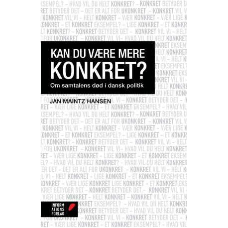 Kan du være mere konkret? handler om det, der er åbenlyst for enhver: at dansk politik udspiller sig på en frustrerende og ofte direkte latterlig måde. Den politiske samtale er slet ikke en rigtig politisk samtale. Vi har glemt, hvad politik er. Glemt, at politik ikke kun handler om personer, enkeltsager, målbare resultater og konkrete tiltag, men lige så meget om perspektivrig samtale, idealer, visioner og håb. Utallige eksempler fra den politiske debat viser således, at vores politiske offentlighed er gennemsyret af et krav om at tænke og tale konkret. Men dette dominerende krav har skubbet muligheden for, at en politiker kan tænke abstrakt, tænke nuanceret, tænke nyt og tænke langsigtet til side. Bogen viser, at balancen mellem mål og midler, mellem realiserbarhed og idealer, mellem virkelighed og håb er skævvredet – blandt andet på grund af vores videnskabeliggjorte kultur, en indviklet verden, medieudviklingen og anti-intellektualismen i Danmark – og den udfolder et ideal for, hvordan vores politiske offentlighed kunne se ud i stedet. Derudover begrunder bogen det mindre åbenlyse: hvorfor idealer, håb og politisk tænkning bør have en større plads i dansk politik. Bogen er fyldt med genkendelige eksempler fra den politiske debat og fra medierne og giver en skarp og præcis analyse af den politiske virkelighed i dag.