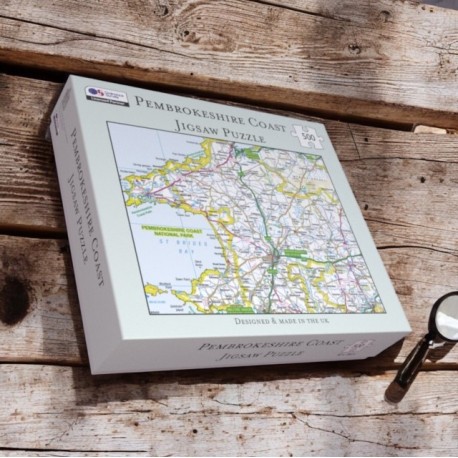 The OS Map 500 Piece Premium Jigsaw Puzzle - this licensed OS Map 500 piece jigsaw puzzle, is fully made in the UK to the highest sustainability standards, chlorine free paper, vegan ink, made from 100% recyclable materials and celebrates the Pembrokeshire Coast National Park