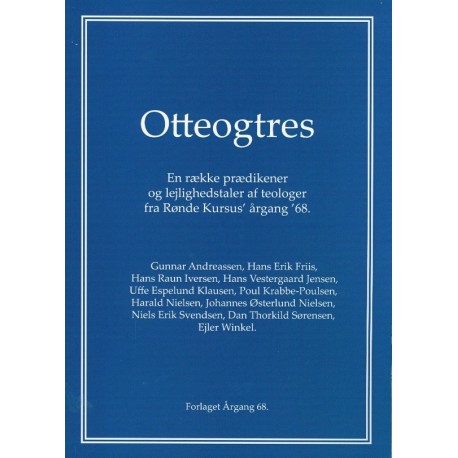 En usædvamlig prædikensamling, idet den er udgivet af 11 gamle klassekammerater, der alle blev studenter fra Rønde Kursus i 1968 (deraf bogens titel: Otteogtres) og siden teologer.