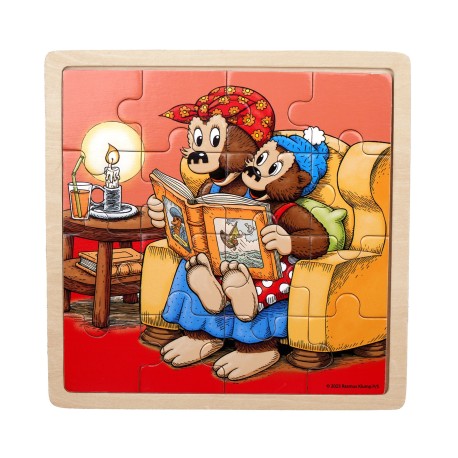 Hyggeligt robust træpuslespil i ramme med et sødt motiv af Rasmus Klump. Puslespillet vil bringe mange timers leg og udvikling for de små. Puslespil udvikler dit barns visuelle perception og finmotorik. Puslespil er en rigtig god træning og udvikling du kan give dit barn. Når vi lægger puslespil, bruger vi begge hjernehalvdele, da vi både skal visualisere/forestille os, hvordan puslespillet skal se ud og samtidig finde op og ned på brikkerne og dermed få hele puslespillet til at gå op. Især de mindste børn har brug for at få stimuleret begge hjernehalvdele i en tidlig alder, da de på dette tidspunkt udvikler sig mest. Der er mange fordele ved at lægge puslespil heriblandt udvikling af barnets øje-hånd-koordination, grovmotorik, finmotorik, farvegenkendelse, figurforståelse, hukommelse, problemløsning, tålmodighed, sociale færdigheder og afslapning og fordybelse. For de mindste børn bør man begynde med et simpelt puslespil med få og store brikker. Når barnet bliver ældre, bør puslespillene også blive sværere og indeholde flere og mindre brikker.Barbo Toys produkter er designet med omsorg her i Danmark og med fokus på bæredygtighed og materialer af høj kvalitet. Vores produkter er designet og fremstillet efter filosofien “læring gennem leg” og understøtter og stimulerer aktivt barnets fantasi og læringsudvikling.Velegnet til børn i alderen 2+ årIndeholder: 16 stk