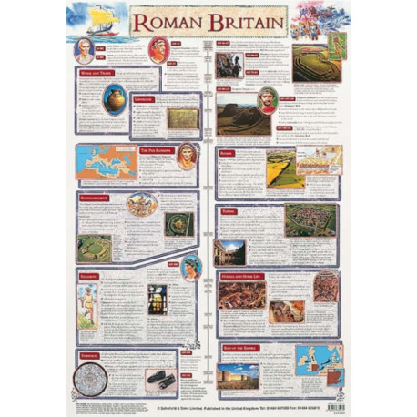 Aimed at the Key Stage 1 and 2 levels, this chart provides facts and information about the everyday life in Britain during the Roman Times. It features topics about work and trade, religion and infrastructure. Featuring colorful pictures, it is intended for a project or lesson.