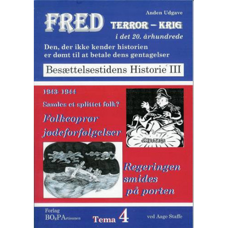 I bind 4 behandler forfatteren besættelsesårene 1943-44. Som i de foregående bind tager Aage Staffe udgangspunkt i egne erfaringer - her som 18 årigt medlem af sabotageorganisationen KOPA - BOPA - samt i oplysninger fra arkiver - fra samtaler med mennesker, der har oplevet periodens begivenheder. Blandt de emner, der behandles i dette bind, er folkestrejkerne og forfølgelsen af jøder og kommunister, forholdene i det besatte Norge, hvor tyskerne for langt hårdere frem end i det fredelige Danmark. De allieredes bombning af B&W i København, modstandsbevægelsen våben, herunder den hjemmelavede BOPA-gun, opstået pga. Den skæve Våbenfordeling.