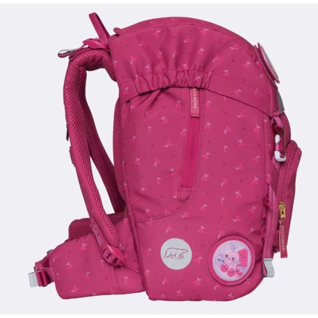 - Vendbar frontlomme - Børn har forskellige ønsker, og disse ændrer sig i løbet af de første skoleår. Vi ønsker at yde disse ønsker retfærdighed. Derfor har skolestartsrygsækkene en vendbar frontlomme, der gør det muligt for rygsækken at ændre sit udseende på få sekunder. Sådan kan rygsækken også gøres mere neutral, hvis det ønskes