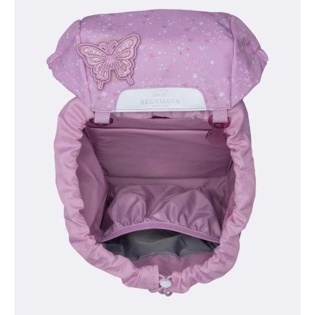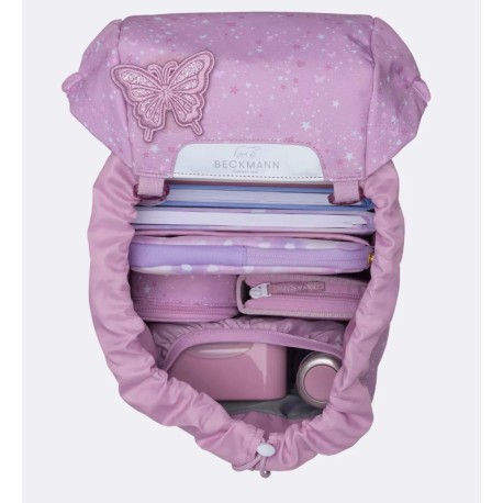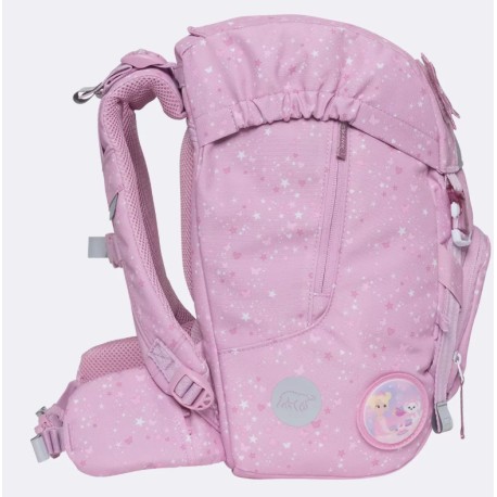- Vendbar frontlomme - Børn har forskellige ønsker, og disse ændrer sig i løbet af de første skoleår. Vi ønsker at yde disse ønsker retfærdighed. Derfor har skolestartsrygsækkene en vendbar frontlomme, der gør det muligt for rygsækken at ændre sit udseende på få sekunder. Sådan kan rygsækken også gøres mere neutral, hvis det ønskes