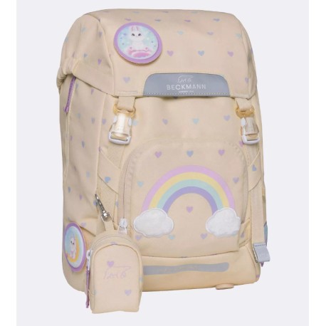 - Vendbar frontlomme - Børn har forskellige ønsker, og disse ændrer sig i løbet af de første skoleår. Vi ønsker at yde disse ønsker retfærdighed. Derfor har skolestartsrygsækkene en vendbar frontlomme, der gør det muligt for rygsækken at ændre sit udseende på få sekunder. Sådan kan rygsækken også gøres mere neutral, hvis det ønskes