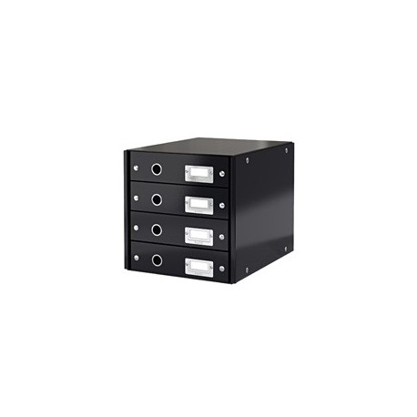Skuffekabinet Leitz Click&Store 4 skuffer, sort Skuffekabinet med 4 skuffer til opbevaring af dokumenter mm. i A4 format. Sammenklappelig for pladsbesparende opbevaring, når den ikke er i brug. Metal fingerhul for let udtrækning af skuffe. Etiketholder giver let indeksering af indhold i skuffe. Lamineret overflade giver bedre og længerevarende beskyttelse. Elegant og tidssvarende design, der præsenterer sig flot på ethvert kontor eller i hjemmet. Indhold i skuffer er let tilgængeligt og beskytter fra nysgerrige kollegers øjne. Enkel samling, forbedret boks styrke Pladsbesparende A4 skuffekabinet baseret på standard kontormål på dokumenter Metal fingerhuller giver nem udtrækning af skuffe Etiketholder giver nem indeksering Indvendige mål per skuffe (BxHxD) 330 x 59 x 251 mm