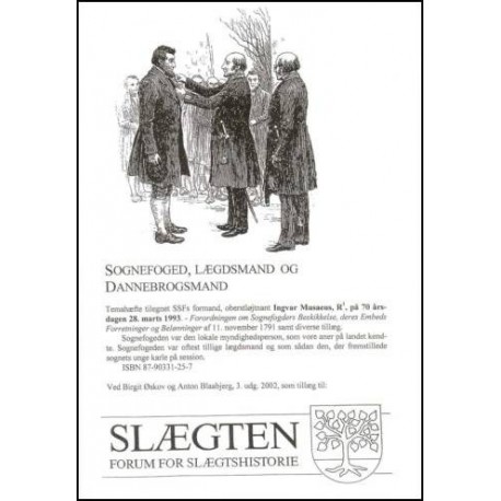 Hæftet fortæller med udgangspunkt i den store sognefoged-forordning 1791 om denne lokale myndighedspersons arbejdsområder. Desuden oplysninger om hvervet som lægdsmand samt om Dannebrogsmændenes Hæderstegn. Temahæfte tilegnet SSFs daværnede formand Ingvar Musaeus på 70 årsdagen 28.3.1993.