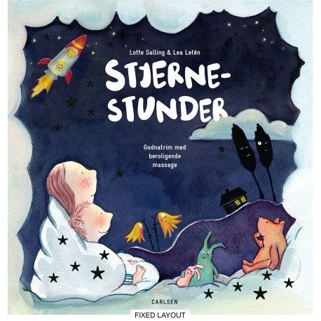Stjernestunder giver barn og voksen en behagelig afslutning på dagen. Bogen kombinerer remser med massage, så barnets sprog stimuleres, og der udskilles hormoner, som beroliger barnet inden sovetid. Bogen er varmt og stemningsfyldt illustreret af Lea Letén.