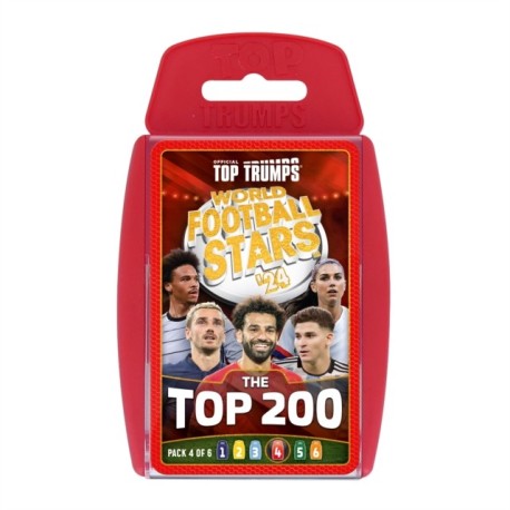 Start collecting all of the world's top players with Top Trumps World Football Stars Top 200. All the best players from the top leagues around the world - UK, France, Italy, USA, Germany, Spain, Middle East - both men and women, are all included. There are six packs to collect, and this is the fourth one. Find out who has more international caps out of Salah and Mahrez, and who's more valuable: Dias or Nunez? Compare stats, learn facts and battle it out to find out who is the Top Trump.