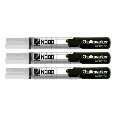 Kridt wet eraser marker til brug på ikke-porøse overflader som glas, hvid farve, pakke med 3. - Wet erase kridtmarker for en dristig hvid kridteffekt - 3 mm spids - Pakke med 3